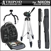 Click Here to see more reviews about: Tripod Accessory Bundle Kit For Nikon D3100 D5100 Digital SLR Camera Includes 52 Inch Pro Tripod + 67 Inch Monopod + Gripster + Deluxe BackPack