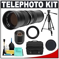 Kit includes:♦ 1) Kenko 420-800mm f/8.3-16x Vari 8000S Telephoto Lens (T Mount)♦ 2) Nikon - T Mount♦ 3) Rear Lens Cap for Nikon♦ 4) Samyang 2x Teleconverter (T Mount)♦ 5) Precision Design PD-57TR Photo/Video 57" Tripod with Case♦ 6) Precision Design 1000 Deluxe Digital SLR System Camera Case♦ 7) Precision Design 6-Piece Camera & Lens Cleaning Kit♦ 8) Instruction Sheet for T Mount & LensThis highly affordable kit mates the powerful Kenko 420-800mm Super Telephoto Zoom Lens with its matched 2x Teleconverter for an ultra powerful 840-1600mm combination that will allow you to capture images magnified up to 32x that of a standard 50mm lens! This zoom is manufactured in Japan with multi-coated all glass elements and a built-in lens hood for superior contrast and resolution with an aluminum alloy body that is surprisingly lightweight and compact. Macro focusing even at 1600mm down to a remarkable 5.25 ft, it can also be used reveal all the details and textures of small subjects.This 2x teleconverter attaches to any T-mount (screw mount) lens, and effectively doubles the focal length of that lens, allowing the photographer to get much closer to the action. This simple, yet high-grade adapter provides excellent optical quality.Avoid camera shake and achieve maximum image quality by setting your camera on this sturdy, lightweight 57-inch tripod.This multi-compartment case will easily hold your camera, lenses, flash, and accessories. Features four padded dividers in the main compartment to secure your equipment, and includes numerous zippered and mesh pockets for smaller items.This 6-piece cleaning kit contains everything you'll ever need to properly clean your lenses, including a Hurricane Air Blower, Lens Cleaning Tissues, Lens Cloth, Lens Cleaning Liquid, Brush and Cotton Swabs.